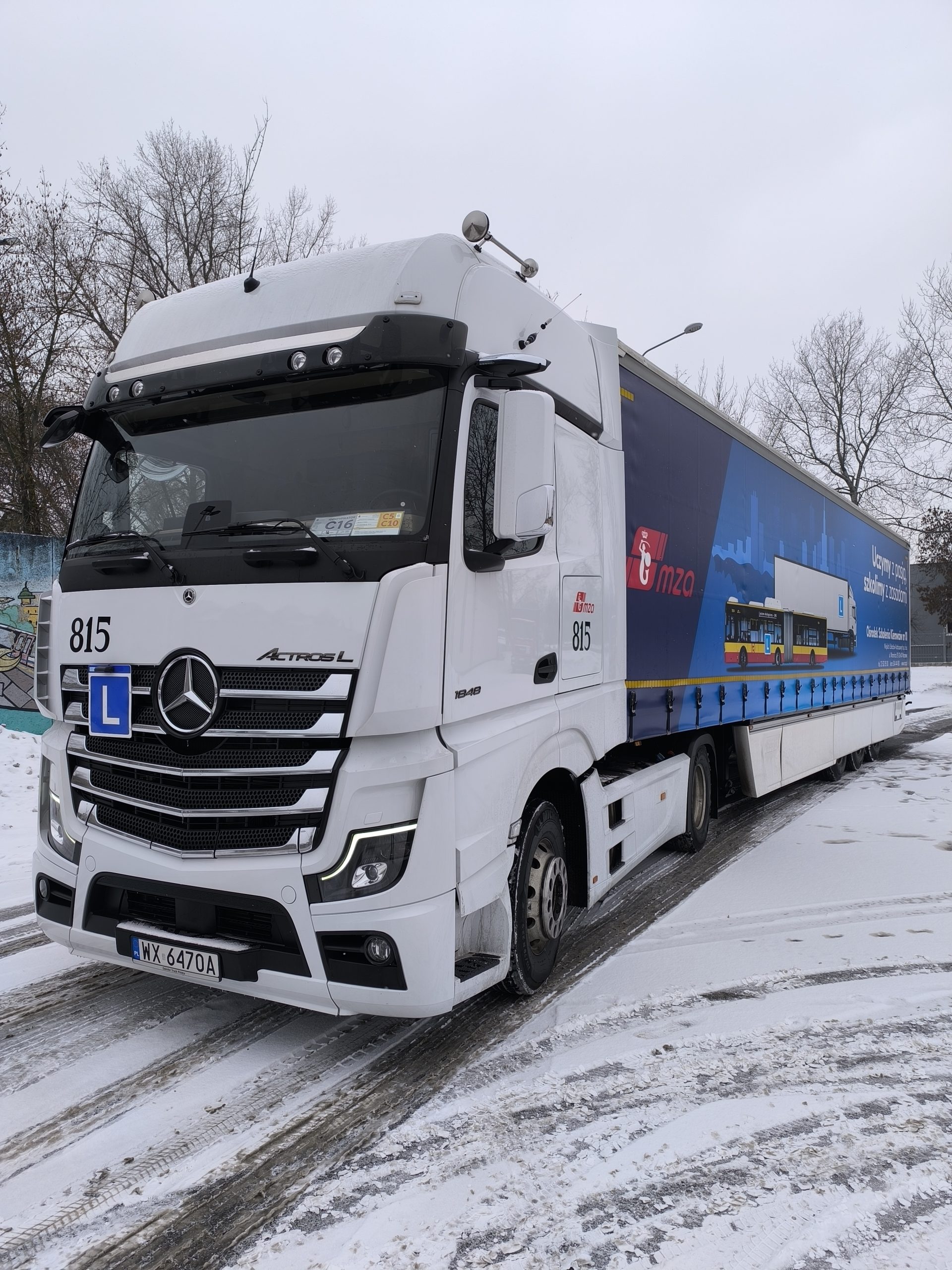 Posiadamy nowoczesny ciągnik siodłowy z automatyczną skrzynią biegów marki Mercedes-Benz Actros 1848 LS o mocy 476 KM wyposażony w najnowsze technologie wspierające kierowcę i zwiększające bezpieczeństwo jazdy.